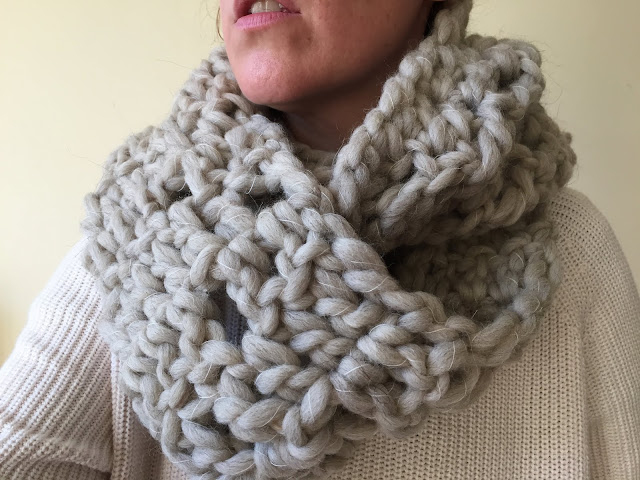 But as we are due some verrrry cold weather here in the UK, I couldn't resist making a gorgeously soft and cosy cowl with some super-chunky and super-gorgeous yarn. And it will be my last one for now.